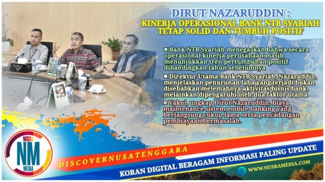 NUSRAMEDIA.COM — Bank NTB Syariah menegaskan bahwa secara operasional kinerja perusahaan masih menunjukkan tren pertumbuhan dibandingkan tahun sebelumnya, meskipun laba perusahaan saat ini mengalami penurunan. Direktur Utama Bank NTB Syariah, Nazaruddin, menjelaskan bahwa penurunan laba yang terjadi bukan disebabkan oleh melemahnya aktivitas bisnis bank, melainkan dipengaruhi oleh dua faktor utama.