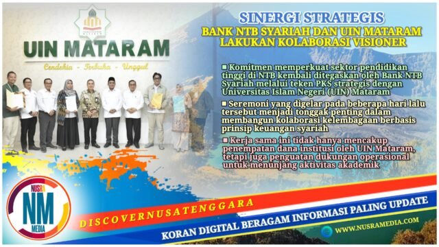 NUSRAMEDIA.COM — Komitmen memperkuat sektor pendidikan tinggi di Nusa Tenggara Barat kembali ditegaskan oleh Bank NTB Syariah melalui penandatanganan Perjanjian Kerja Sama (PKS) strategis dengan Universitas Islam Negeri Mataram.