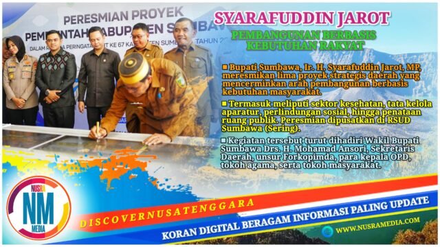 NUSRAMEDIA.COM — Bupati Sumbawa, Ir. H. Syarafuddin Jarot, MP, meresmikan lima proyek strategis daerah yang mencerminkan arah pembangunan berbasis kebutuhan masyarakat.