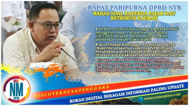NUSRAMEDIA.COM — DPRD Provinsi Nusa Tenggara Barat kembali menggelar Rapat Paripurna pada Selasa (10/3/2026) dengan agenda penyampaian pandangan umum fraksi-fraksi terhadap Rancangan Peraturan Daerah (Raperda) prakarsa Gubernur NTB tentang Perubahan atas Peraturan Daerah Nomor 2 Tahun 2024 tentang Pajak Daerah dan Retribusi Daerah.