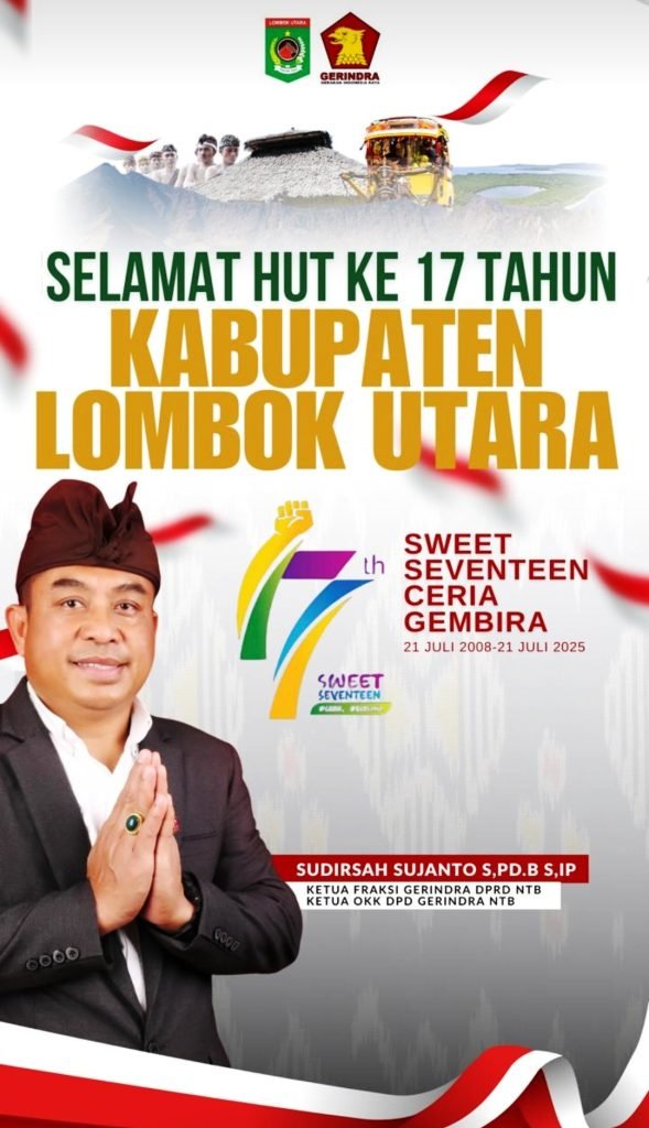 NUSRAMEDIA.COM — Tak terasa, waktu nampak berlalu begitu cepat. Betapa tidak, tepat 21 Juli, Kabupaten Lombok Utara (KLU) akan memasuki usianya yang ke-17 pada tahun 2025 ini.