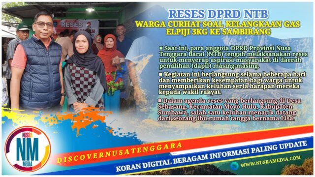 NUSRAMEDIA.COM — Saat ini, para anggota Dewan Perwakilan Rakyat Daerah (DPRD) Provinsi Nusa Tenggara Barat (NTB) tengah melaksanakan reses untuk menyerap aspirasi masyarakat di daerah pemilihan (dapil) masing-masing.