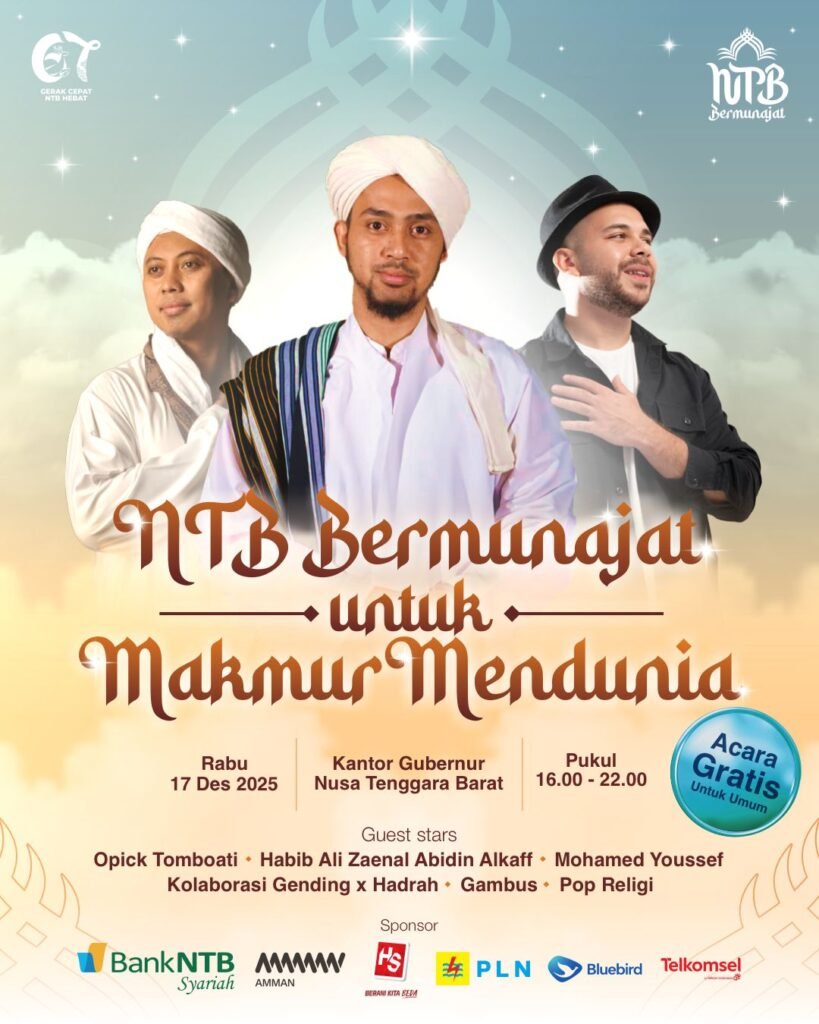 NUSRAMEDIA.COM — Dalam rangka memperingati Hari Ulang Tahun (HUT) Provinsi Nusa Tenggara Barat (NTB) ke-67, Pemerintah Provinsi NTB akan menyelenggarakan kegiatan NTB Bermunajat pada Rabu, 17 Desember 2025, bertempat di Halaman Kantor Gubernur NTB.