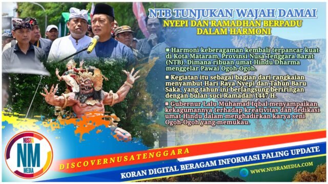 NUSRAMEDIA.COM — Harmoni keberagaman kembali terpancar kuat di Kota Mataram, Nusa Tenggara Barat. Ribuan umat Hindu Dharma menggelar Pawai Ogoh-Ogoh. Kegiatan itu sebagai bagian dari rangkaian menyambut Hari Raya Nyepi dan Tahun Baru Saka, yang tahun ini berlangsung beriringan dengan bulan suci Ramadan 1447 H.
