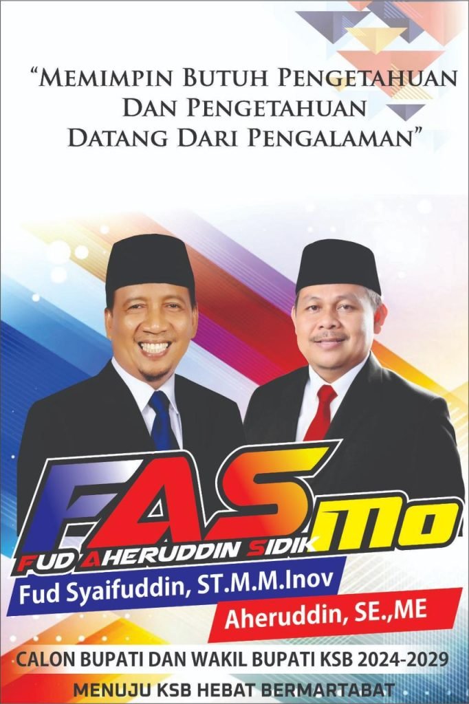Sekedar informasi, bahwa di kontestasi Pemilihan Kepala Daerah (Pilkada) KSB 2024 ini, pasangan Fud-Aher diusung oleh sejumlah partai. Yaitu meliputi Partai NasDem, Partai Gerindra dan Partai Bulan Bintang (PBB).