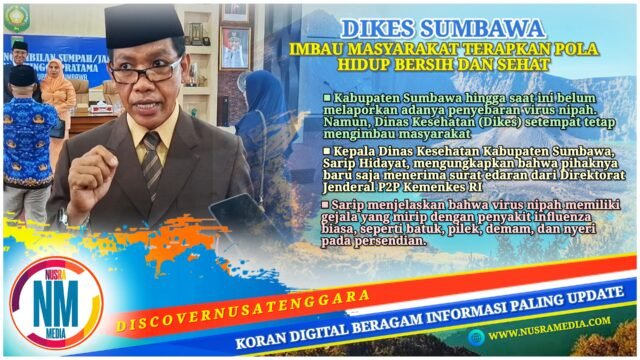 NUSRAMEDIA.COM — Kabupaten Sumbawa hingga saat ini belum melaporkan adanya penyebaran virus nipah. Namun, Dinas Kesehatan (Dikes) setempat tetap mengimbau masyarakat untuk lebih waspada dan menerapkan Perilaku Hidup Bersih dan Sehat (PHBS) sebagai langkah utama pencegahan.