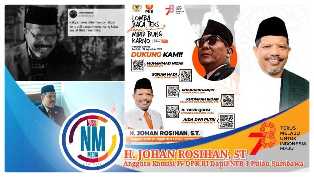 NUSRAMEDIA.COM — Fraksi PKS DPR RI mengadakan kompetisi membaca teks proklamasi mirip Bung Karno dalam memeriahkan HUT ke-78 Republik Indonesia. Anggota DPR RI Dapil NTB 1 Pulau Sumbawa, Johan Rosihan mengungkapkan animo Masyarakat Sumbawa terhadap lomba yang di garap oleh fraksinya.