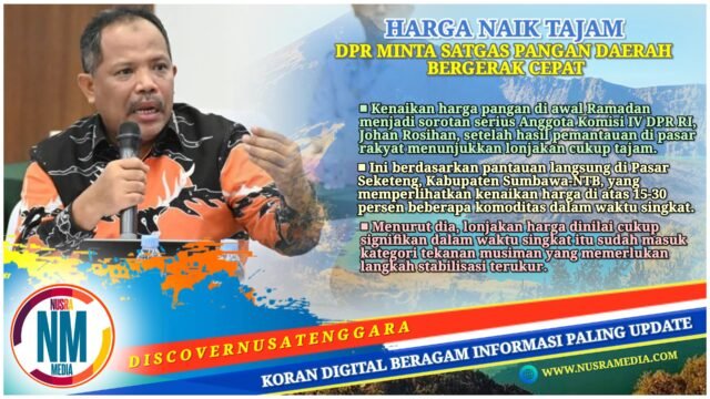 NUSRAMEDIA.COM — Kenaikan harga pangan di awal Ramadan menjadi sorotan serius Anggota Komisi IV DPR RI, Johan Rosihan, setelah hasil pemantauan di pasar rakyat menunjukkan lonjakan cukup tajam pada sejumlah komoditas strategis.