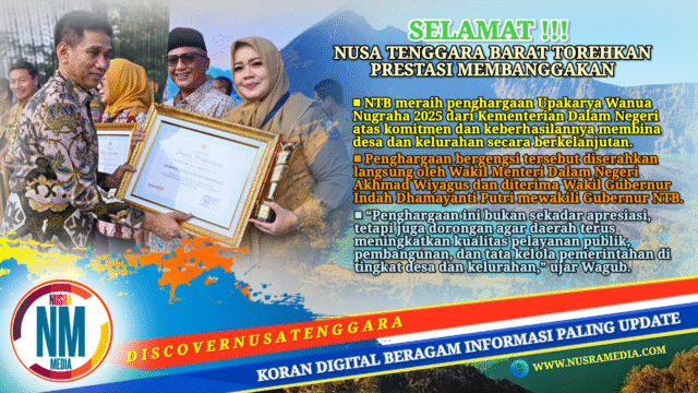 NUSRAMEDIA.COM – Pemerintah Provinsi Nusa Tenggara Barat (NTB) kembali menorehkan prestasi membanggakan di tingkat nasional. NTB meraih penghargaan Upakarya Wanua Nugraha 2025 dari Kementerian Dalam Negeri atas komitmen dan keberhasilannya membina desa dan kelurahan secara berkelanjutan.