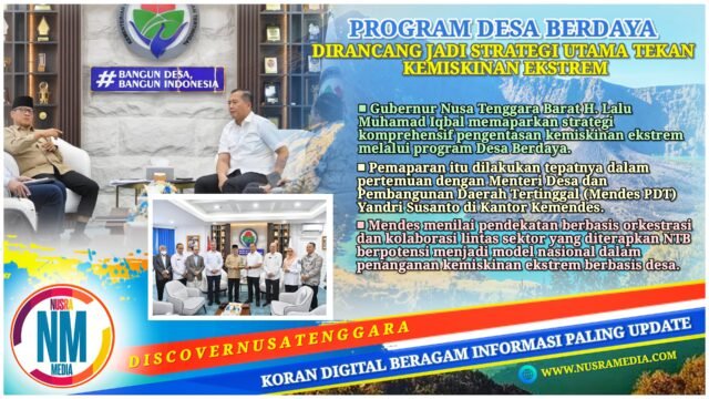 NUSRAMEDIA.COM — Gubernur Nusa Tenggara Barat H. Lalu Muhamad Iqbal memaparkan strategi komprehensif pengentasan kemiskinan ekstrem melalui Program Desa Berdaya.