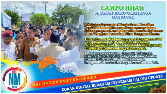 NUSRAMEDIA.COM — Kejutan datang dari Banjarbaru. Presiden Republik Indonesia secara tegas menyatakan dukungan penuh terhadap permintaan Gubernur Nusa Tenggara Barat (NTB) dan Gubernur Nusa Tenggara Timur (NTT) agar Pekan Olahraga Nasional (PON) XXII Tahun 2028 ditetapkan dan diselenggarakan di NTB–NTT.