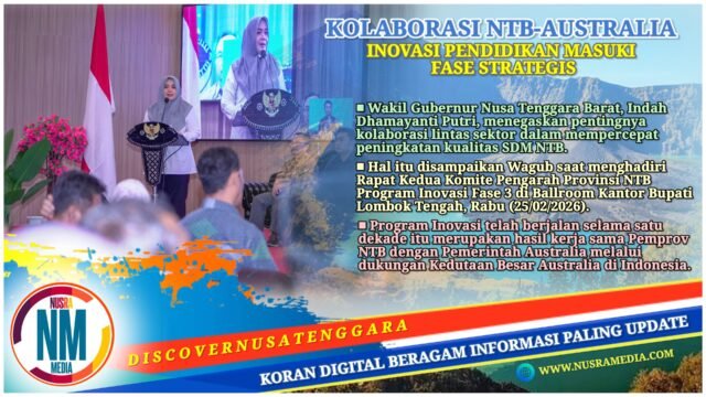 NUSRAMEDIA.COM — Wakil Gubernur Nusa Tenggara Barat, Indah Dhamayanti Putri, menegaskan pentingnya kolaborasi lintas sektor dalam mempercepat peningkatan kualitas sumber daya manusia (SDM) NTB.