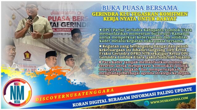 NUSRAMEDIA.COM — Dewan Pimpinan Cabang (DPC) Partai Gerindra Kabupaten Lombok Utara (KLU) memanfaatkan momentum bulan suci Ramadan untuk memperkuat kebersamaan dan soliditas kader melalui kegiatan buka puasa bersama yang digelar pada Selasa (17/03/2026).