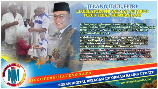 NUSRAMEDIA.COM — Hingga penghujung Ramadan 1447 Hijriah, semangat berbagi terus ditunjukkan oleh Anggota DPRD Provinsi Nusa Tenggara Barat (NTB), H. Salman Alfarizi, SH.